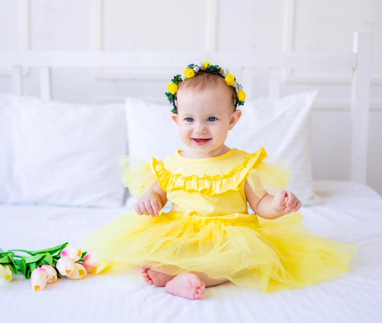 LaceWhimsy – Corduroy Floral Romper with Petal Collar for Baby Girls